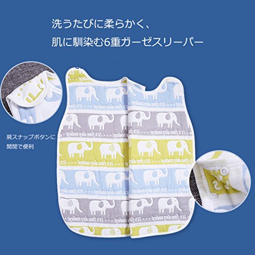 (ホララ)Horara 6重ガーゼ ベビー スリーパー オールシーズン パジャマ 寝袋 オーガニックコットン 75cm-85cm (象柄、M)
