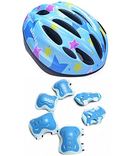 HORIZON 子供 用 ヘルメット+キッズ プロテクター 軽量 サイクリング 自転車 用 (ブルー・星) (ブルー・星)
