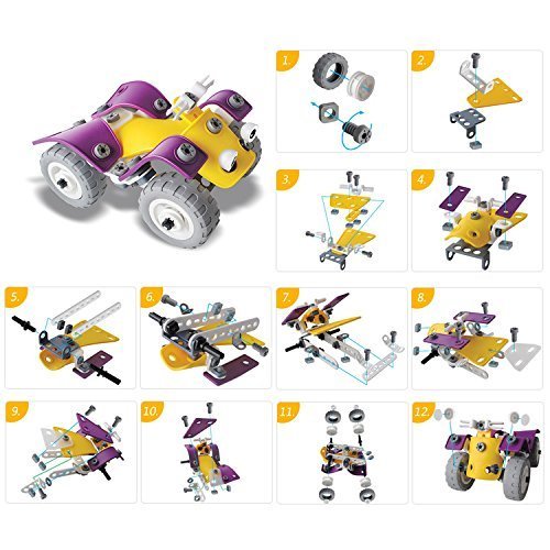 HOROLAS ねじ止めブロック おもちゃ 多種類変形 立体パズル 100ピース レースカー・オフロードバイク・ヘリコプター・戦闘機など 誕生日 クリスマスプレゼント プレゼント 立体パズル ごっこ遊び ブロック おもちゃ 積み木