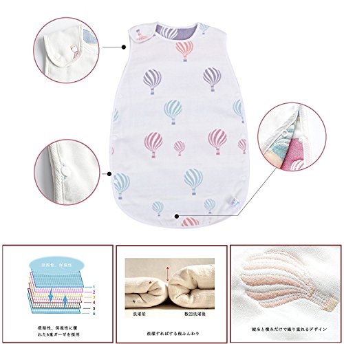 - 「多重保温」6重ガーゼは、寝袋内に暖かくてふんわりした空気を含み、寒い冬で温度差に弱い赤ちゃんの保温を助けてくれます。100%コットンで吸水性が抜群!暑い時に汗を素早く吸収して、サラサラを保ちます。一年間を通して使えます。