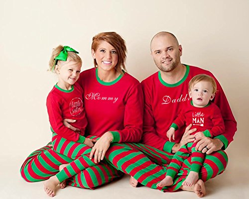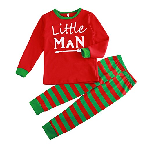 クリスマス 家庭 パジャマ 父 母 女児 息子 英字 シャツ ストライプ パンツ 上下二点セット 綿 (男の子, 6-7歳)