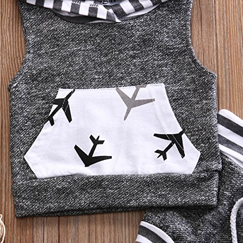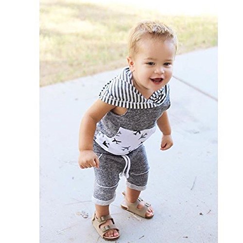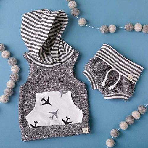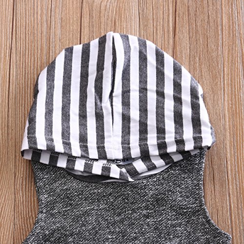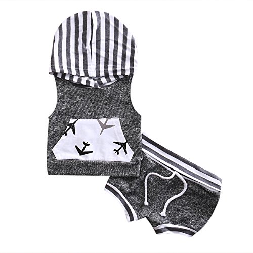 0-4歳 新生児 幼児 女の子 男の子 子供服 縞模様 ノースリーブ シャツ+ ストライプ プリント ショートパンツ 上下二点セット 夏 (グレー, 60)