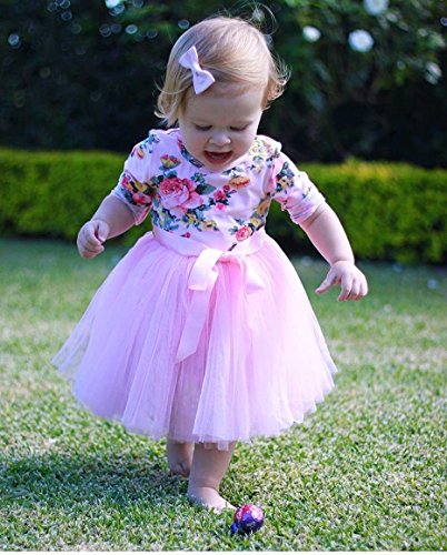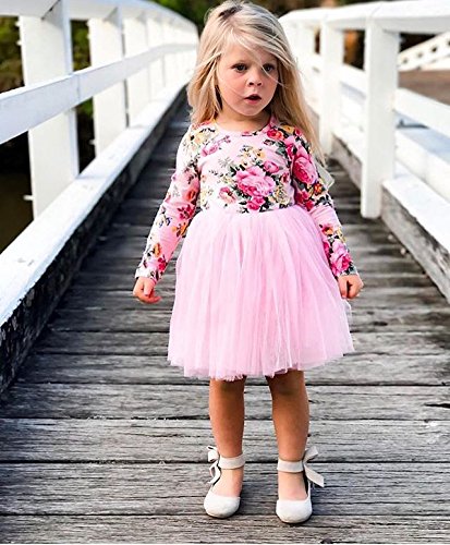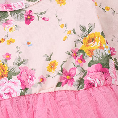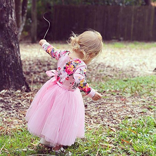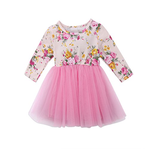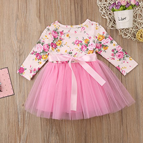 0-5才設定 子供服 ワンピース ベビー 女の子 長袖 フラワー チュニック リボン レース ドレス 卒業式発表会 結婚式 入園式 七五三 入学式 パーティー (80, ピンク)