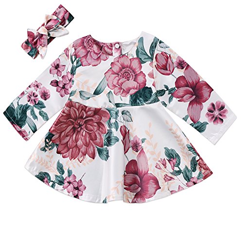 0-24月設定 新生児 ワンピース ベビー 女の子 長袖 花柄 チュニック 女児 秋冬ドレス (90, フラワー)