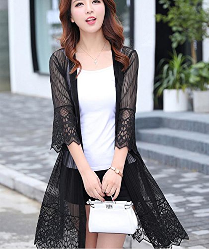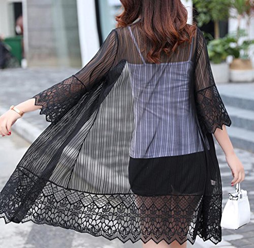 ロングカーディガン レディース UVケア 紫外線 日焼け 冷房 対策 薄手 春夏 大きいサイズ (Black)