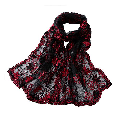 レディースストール レース チェックマフラー シルク大判 オーガンジー シフォンの柔かなストール?ショール?スカーフ 薄手 冷房対策 大判 (185x60CM) (Black)