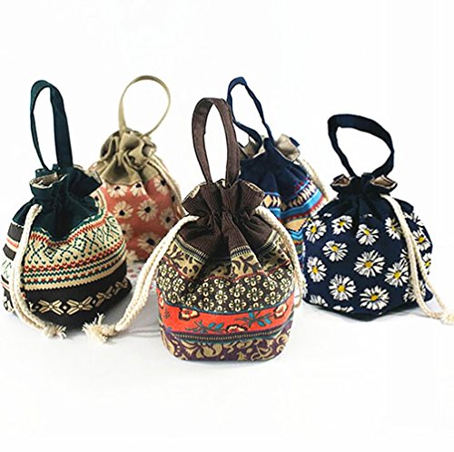 コットン小物ポーチ財布,コインケース 小銭入れ 大容量 多機能,帆布がま口,巾着袋アクセサリーや小物入れに (Navy flower)
