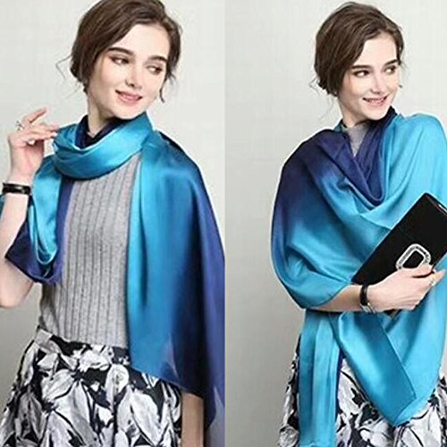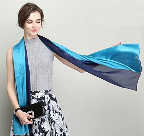スカーフ シルク 大判 ストール マフラー 優しい肌触り 結婚式 通勤 通学 旅行 オフィ レディース (Blue)