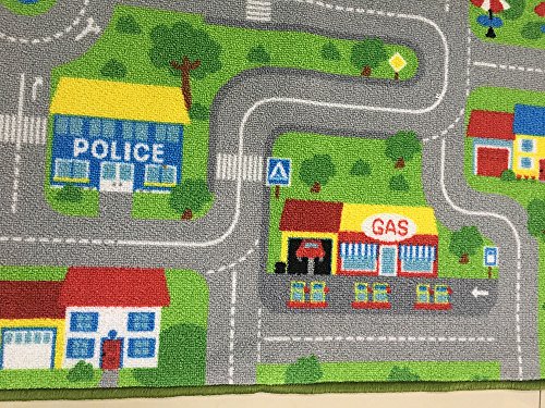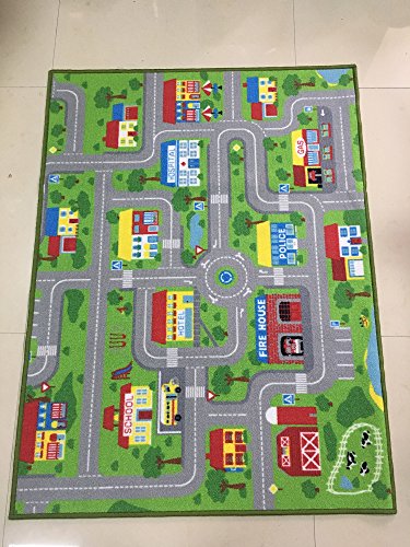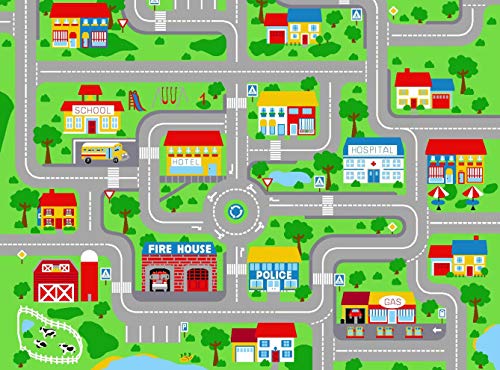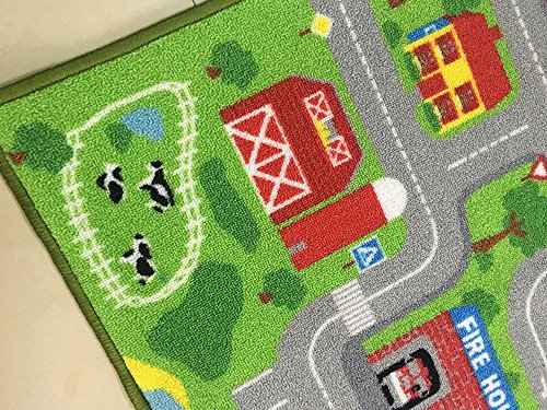 City StreetマップKids ' Rug with道路Kids Rug Play Mat with学校病院駅銀行ホテルBook Store政府ワークショップファームfor Boy Girl保育園寝室、プレイルーム、教室, 39" X 51"