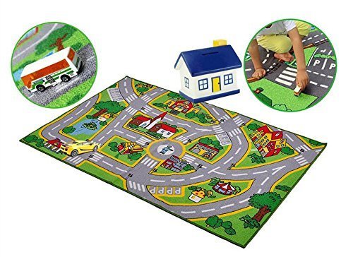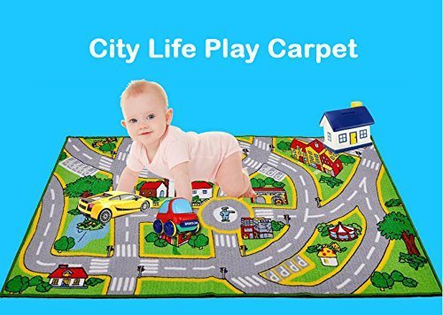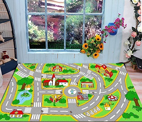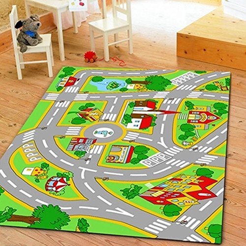 HUAHOO Kids' Rug With Roads Kids Rug play mat City Street Map Children Learning Carpet Play Carpet Kids Rugs Boy Girl Nursery Bedroom Playroom Classrooms Play Mat Children's Area Rug (39.4" x 59") [並行輸入品]