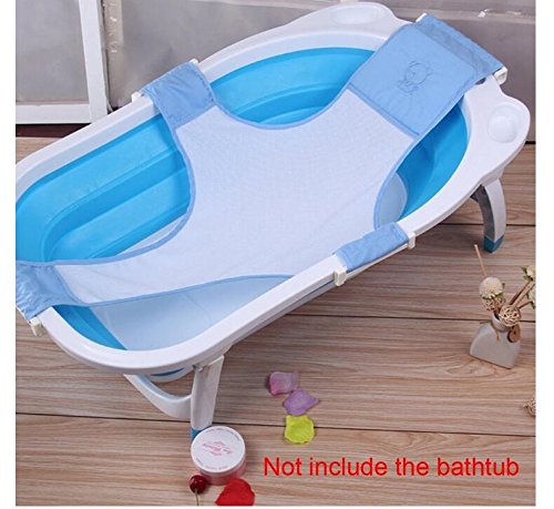 Huaji赤ちゃん浴槽メッシュシートサポートスリングNet幼児バスタブハンモックブルー