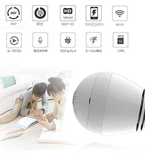 HUANHUA ネットワークカメラ 電球型カメラ ベビーモニター 監視カメラ LED照明 960P WIFI対応 撮影・マイクペット/子供見守り ホワイト ト音声インターコム機能内蔵通信可能 動体検知 アラーム機能