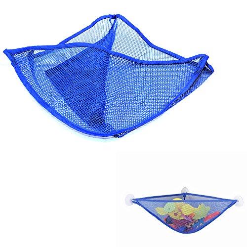 Huele Bath ToyメッシュオーガナイザーバスルームストレージNet BagTriangleバッグオーガナイザーホルダーおもちゃHammock with Suctionカップ(ブルー、7 " x17 " )