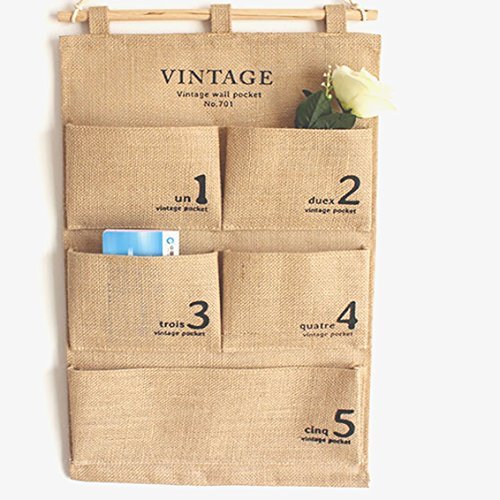 Huele 5ポケットリネンコットンファブリック壁マウント/Overドア布Hangingストレージバッグ壁ドアHangingストレージバッグオーガナイザーwith Number