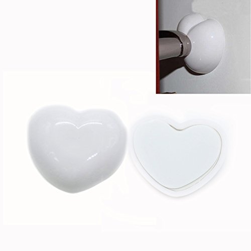 Hueleドアハンドルバンパー、4パックハート形状壁ドアプロテクター粘着ガードストッパーゴム、壁、シールド、停止、ホワイト
