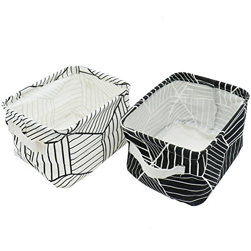 focuh 2個スタイリッシュなストレージバスケットコットンとリネン生地ミニストレージキューブNurseryストレージバスケットハンドル付き(ブラックとホワイト)