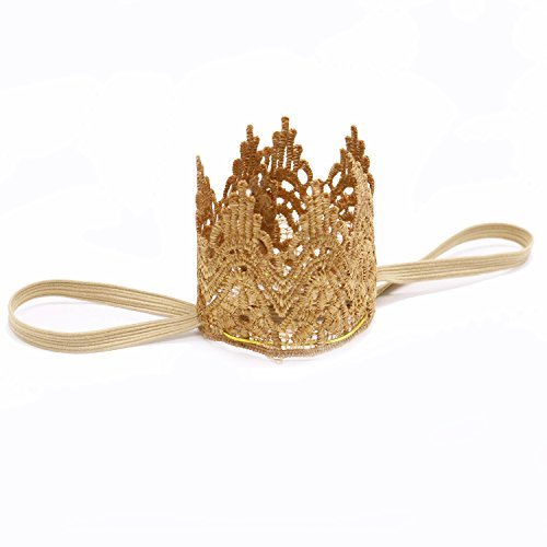Huele赤ちゃんと母Vintage Photo Propプリンセスゴールドレースクラウン伸縮性ヘッドバンドby-08 ( Baby Girls、Mini Crown )