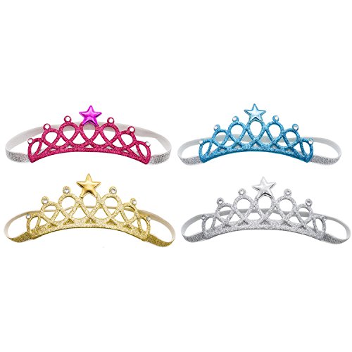 Huele 4 pcs赤ちゃんの女の子の誕生日ギフトPincessティアララインストーンクラウンヘッドバンドセット幼児用プリンセスヘッドバンドヘアアクセサリー
