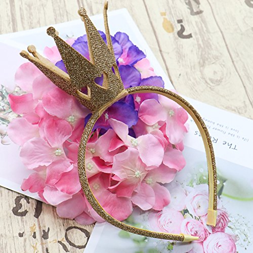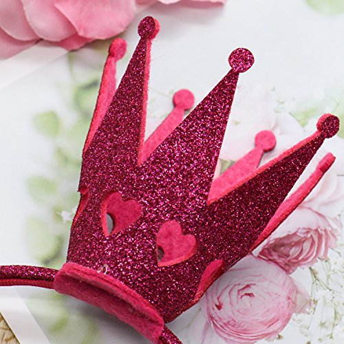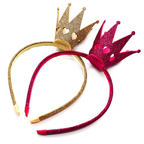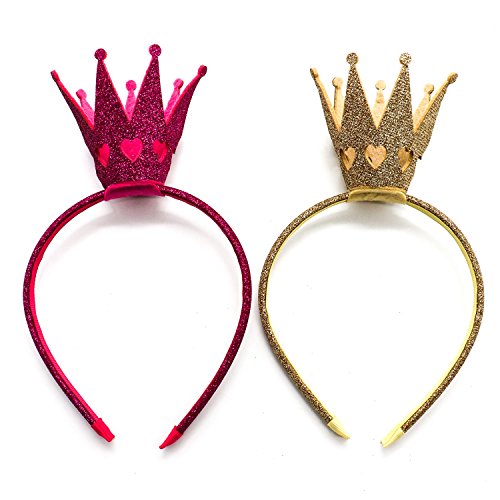 Huele 2パックGirlsカチューシャShinyクラウンプリンセス女の子クラウンヘッドバンドウェディング(ホットピンクとゴールド)