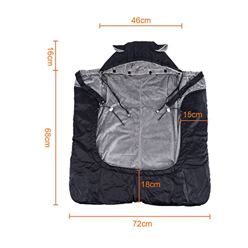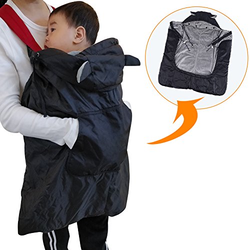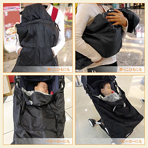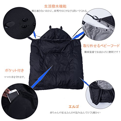 ベビーキャリアカバー エルゴ 赤ちゃん 抱っこひも 防寒防風 マント 子供 撥水 ケープ ベビーカー用 出かける用 ウインターマルチプルダウンカバー 新生児用品 出産祝い 収納バッグ付き(クロ)