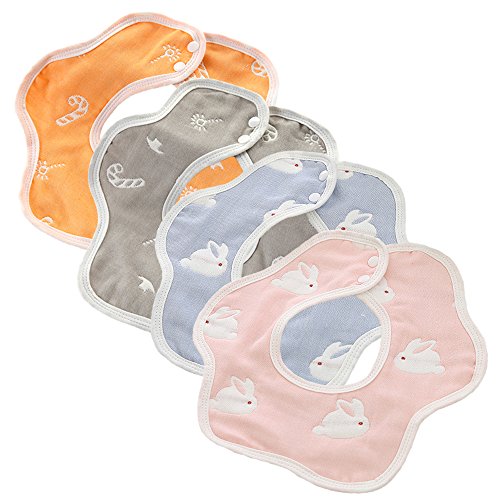HUHU スタイ ビブ よだれかけ コットン100% 柔らかい スナップ 4枚セット 6重ガーゼ (セットE)