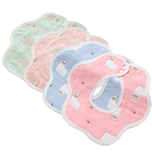 HUHU スタイ ビブ よだれかけ コットン100% 柔らかい スナップ 4枚セット 6重ガーゼ (セットF)