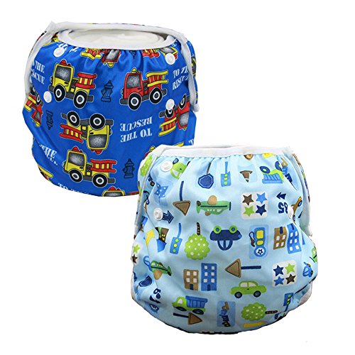 HUHU ベビー スイムパンツ 水遊びパンツ 水遊び用おむつ サイズ調整可能 水着 防水 2点セット (クルマ)