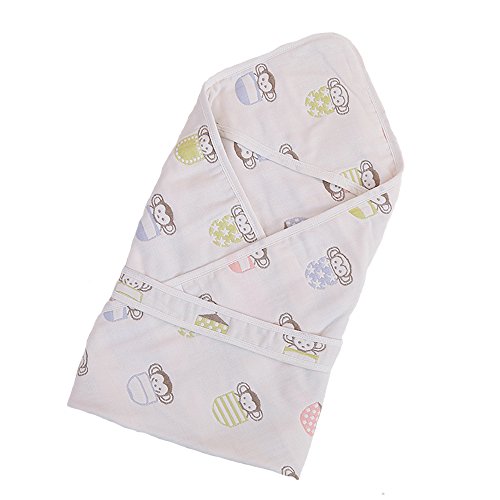 HUHU 6重ガーゼ おくるみ ブランケット バスタオル ベビー パジャマ 綿 90×90cm (モンキー)