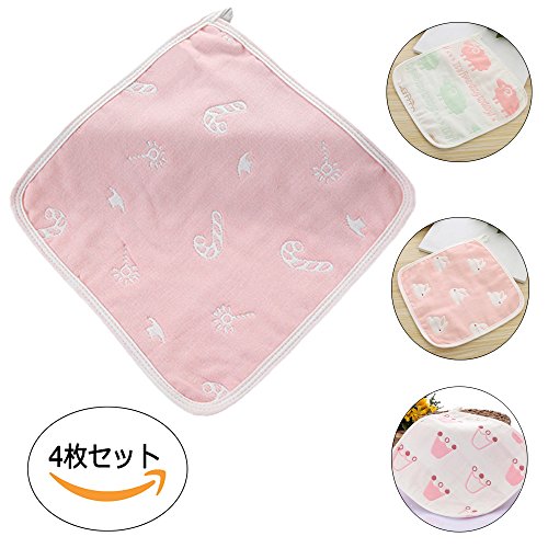 HUHU ガーゼ ハンカチ コットン 柔らかい 可愛い ベビー お得4枚セット (ピンク)