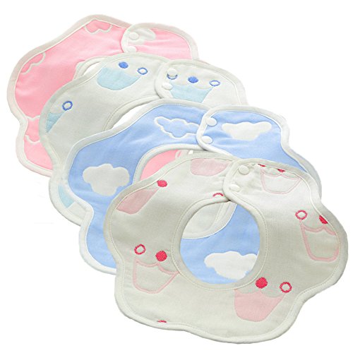 HUHU スタイ ビブ よだれかけ コットン100% 柔らかい スナップ 4枚セット 6重ガーゼ (セットA)