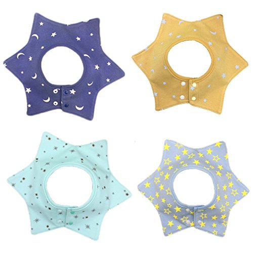 HUHU ベビー スタイ 360度回転 ビブ よだれかけ 防水加工 調節可能 スナップ 5層厚さ 柔らかい コットン (星)