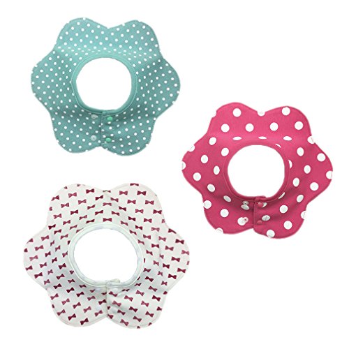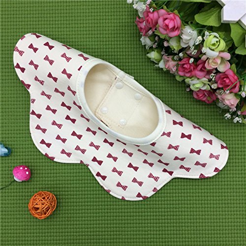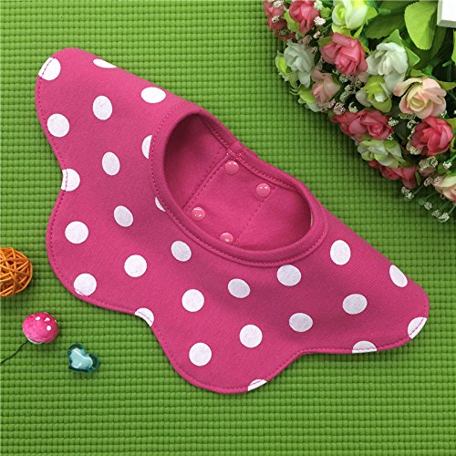 HUHU ベビー スタイ 360度回転 ビブ よだれかけ 防水加工 調節可能 スナップ 5層厚さ 柔らかい コットン (花レッド)