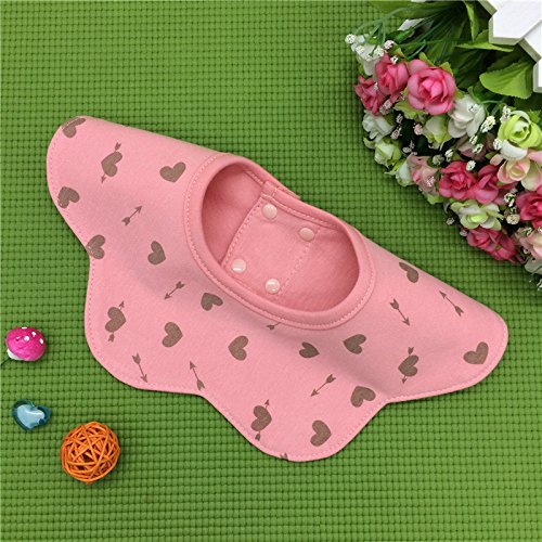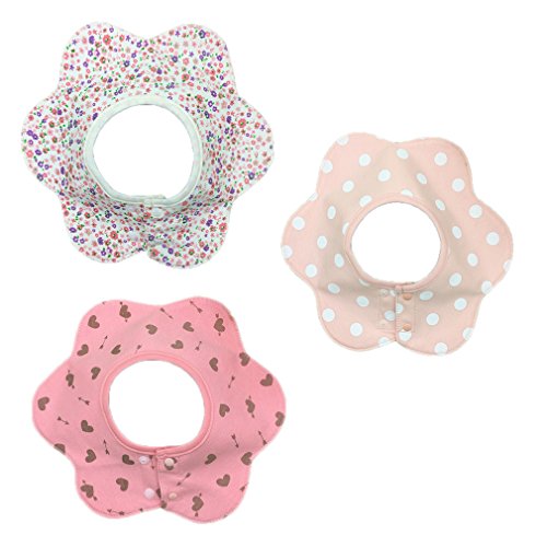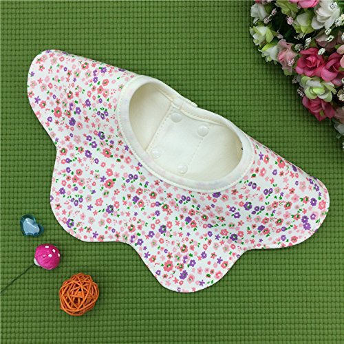 HUHU ベビー スタイ 360度回転 ビブ よだれかけ 防水加工 調節可能 スナップ 5層厚さ 柔らかい コットン (花ピンク)