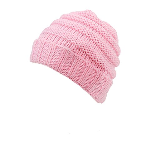 HUHU ニット キャップ 帽子 子供用 フリーサイズ 無地 かわいい 防寒 (コスモスピンク)