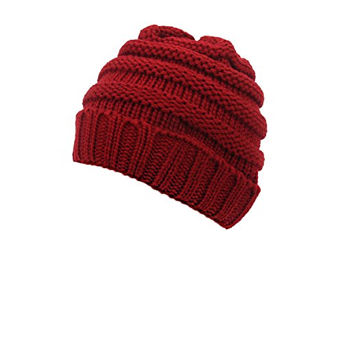HUHU ニット キャップ 帽子 子供用 フリーサイズ 無地 かわいい 防寒 (ワインレッド)