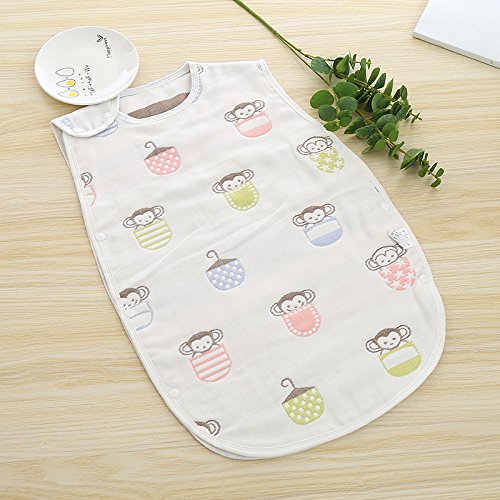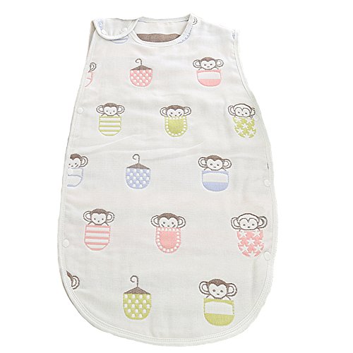 HUHU 6重ガーゼ スリーパー ベビー パジャマ ふわふわ コットン 柔らかい 綿 (モンキー)