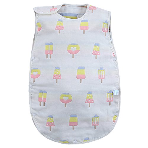 HUHU 6重ガーゼ スリーパー ベビー パジャマ ふわふわ コットン 柔らかい 綿 (ice)