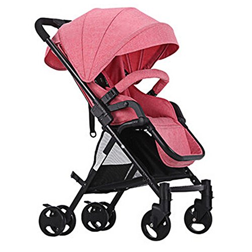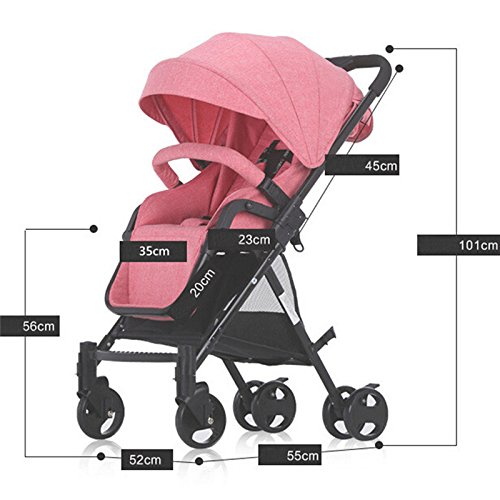 HUKOER ベビーカー ハイシートベビーカー 4輪ベビーカー 折りたたみ式 通気性良い 物置袋付き (ピンク)