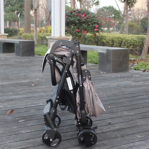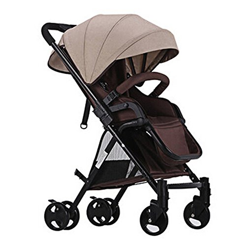 HUKOER ベビーカー ハイシートベビーカー 4輪ベビーカー 折りたたみ式 通気性良い 物置袋付き (カーキ)