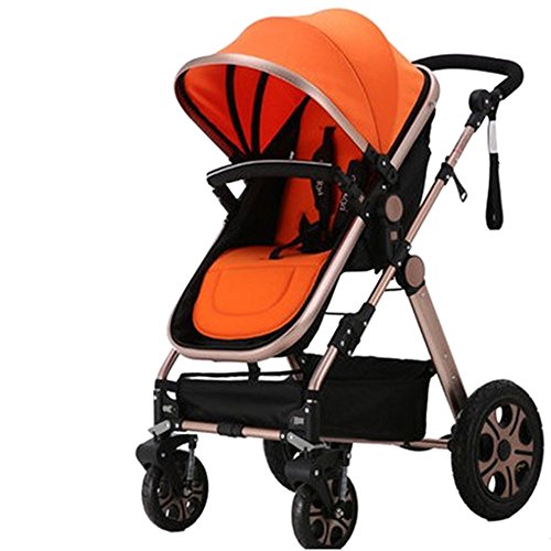 HUKOER ベビーカー ハイシートベビーカー 4輪ベビーカー 両対面ベビーカー 折りたたみ式 通気性良い 物置袋付き (オレンジ)