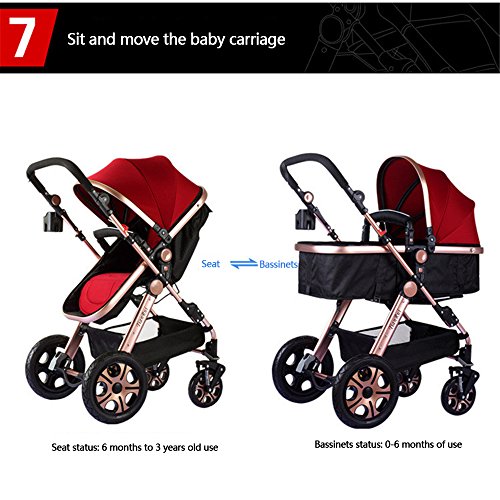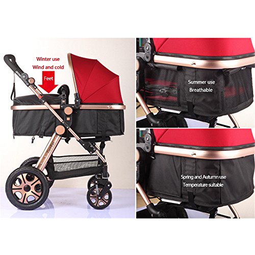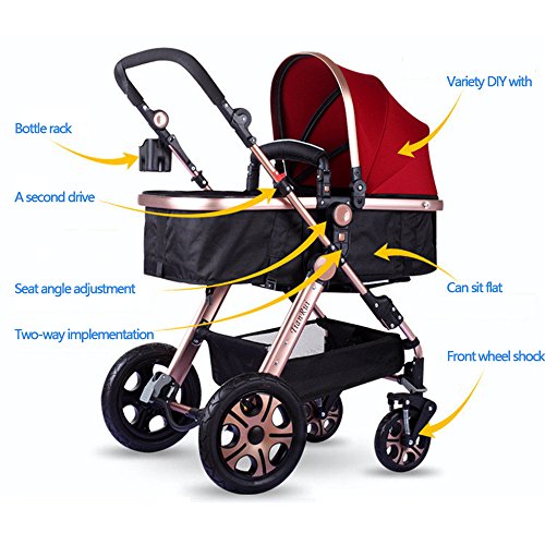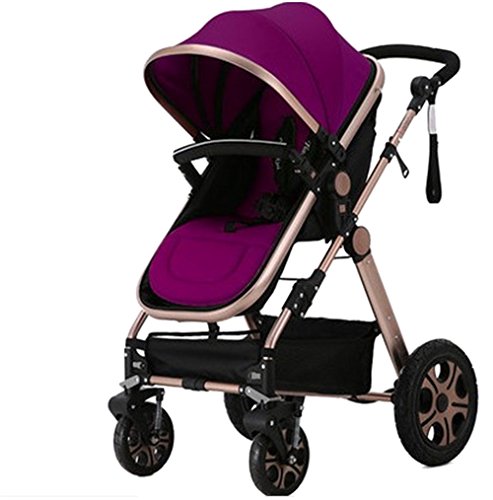 HUKOER ベビーカー ハイシートベビーカー 4輪ベビーカー 両対面ベビーカー 折りたたみ式 通気性良い 物置袋付き (パープル)