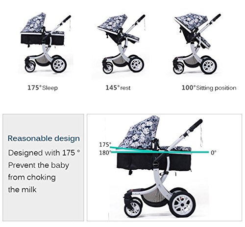 • 背もたれ100~180度調節可能、ベビーが座っても寝ても気持ちいい。