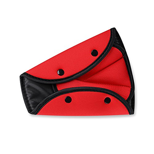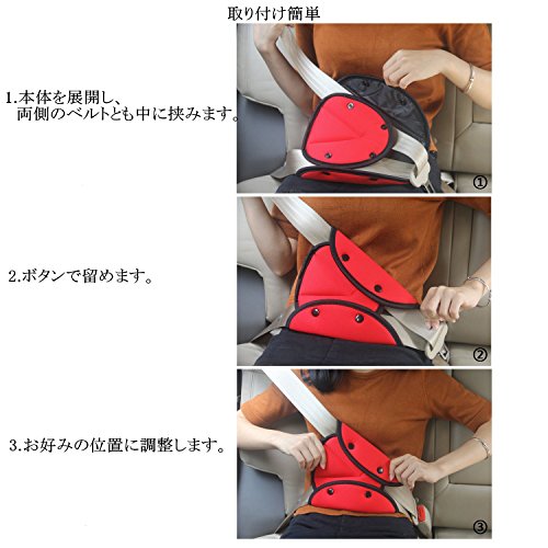 ベルトヘルパー セーフティパッド HULISEN ストッパー シートベルト調整 安全カバー 子供用 女性用 取り付け簡単 (赤色)