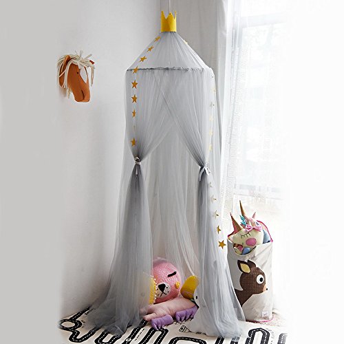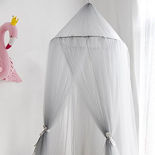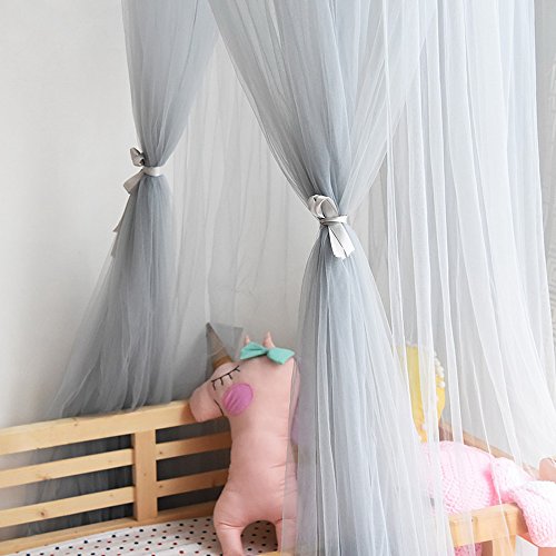 HUNTERMAX 蚊帳 天蓋 オシャレ カーテン モスキートカーテン 虫除け 可愛い円形蚊帳 ロマンチック お姫様 気分 吊り下げタイプ 取り付け簡単 収納便利 部屋飾り キッズプレゼント 子供部屋カーテン 9色 (グレー)