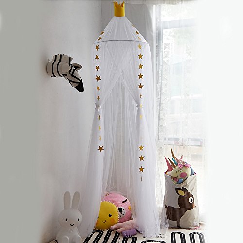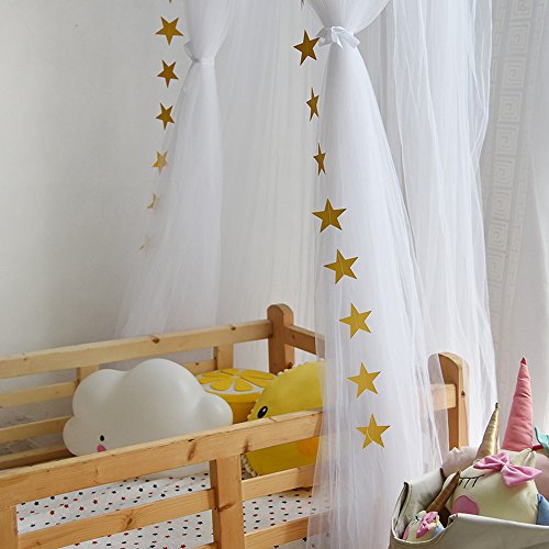 HUNTERMAX 蚊帳 天蓋 オシャレ カーテン モスキートカーテン 虫除け 可愛い円形蚊帳 ロマンチック お姫様 気分 吊り下げタイプ 取り付け簡単 収納便利 部屋飾り キッズプレゼント 子供部屋カーテン 9色 (ホワイト)
