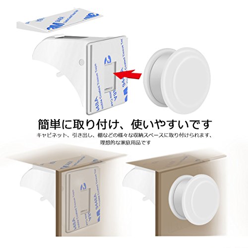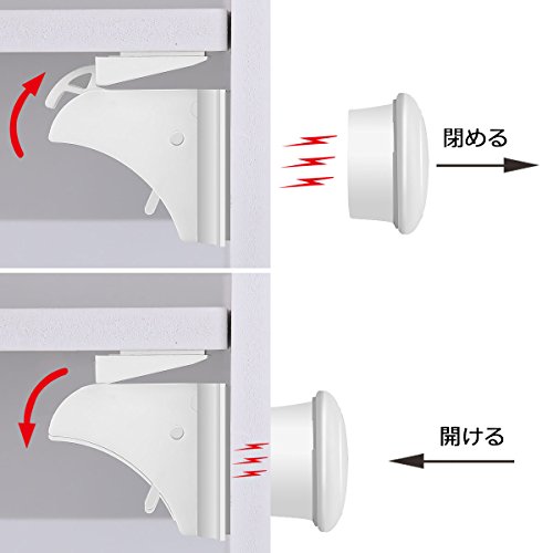 赤ちゃんのいたずら、けが防止に 大人には磁気鍵を使って簡単に開けられますが、赤ちゃんには開けられない作りで、非常に使いやすいベビーガードストッパーです。 様々なタイプの扉に使えます 16個ロックと3つの磁気ガキがあり、引き出し、開き戸、引き戸、食器棚のドアなどいろんな場所に取り付けられます、理想的な家庭用品です。 目立たないデザイン 付属品はすべてキャビネット、引き出し、タンスの内側に設置されますので、隠れたディスクリートデザインです。家具のデザインを損なわれないで、綺麗なままにしています。 丈夫で長持ち 強力磁気磁石と強力な3Mタイプのテープで、厚さは30MMなキャビネットパネル越しでも問題なく開閉ができてます。 使用方法: 1.貼り付け面をきれいにして、位置確認してからロック部品をキャビネットに貼り付けます。 2.キャビネットを閉めると、自動的にロックされます。 3.磁石カギでキャビネット外側から軽くタップして錠がすぐ開きます。 4.常開機能利用する場合、ロックのスイッチを上に押したら、直接にドアを開くことができます。 バッケージ: 16*ロック 3*磁気のキー 16*キーロック固定板 8*予備テープ ご注意: 1.磁石カギは赤ちゃんの届かない所で置いてください。 2.取り付けの際には、手でテープに触れたり、再びに使用しないでください。 3.取り付け後は24時間ほど放置してから使用してください。夜休み前に取り付けるのがお勧めします。4. 貫いて厚さは(MAX)30MM、利用前取り付け箇所の厚さを確認してください。