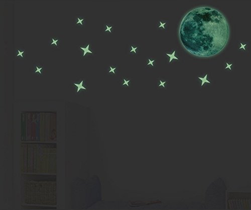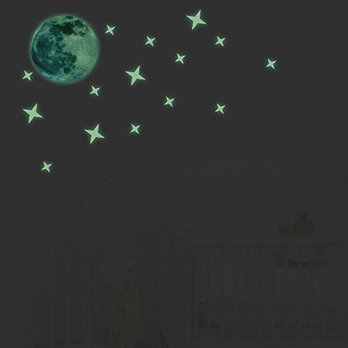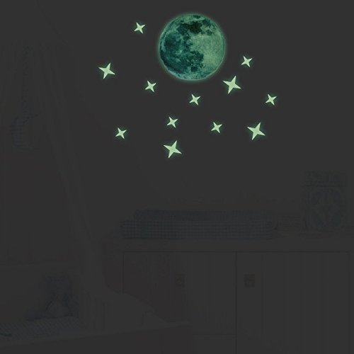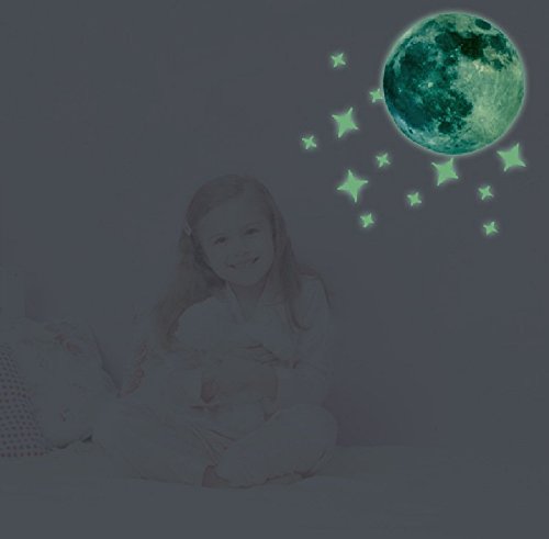 HYSENM ウォールステッカー 蛍光 星と月 ウオールシール 夜光 壁紙シール 蓄光ステッカー 子供部屋 飾り 寝室 ベビールームステッカー グリーン