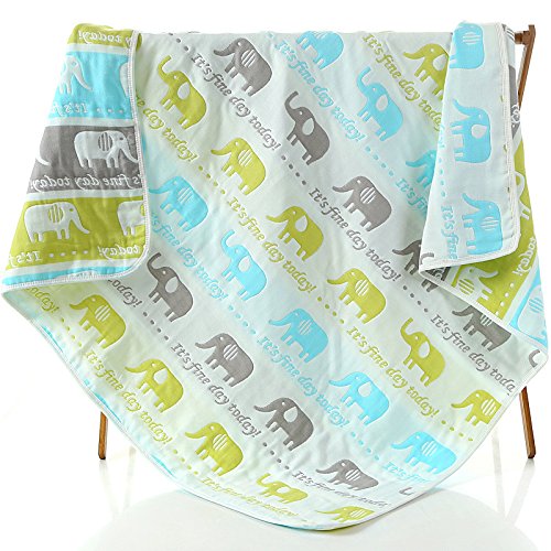 (H_X)全31色可選 6重ガーゼ ベビーケット 湯上りタオル ひざ掛け ふわふわガーゼタオル 子供バスタオル キッズ用ブランケット 毛布 通気性が良い 110×110cm 虹ぞう ゾウ