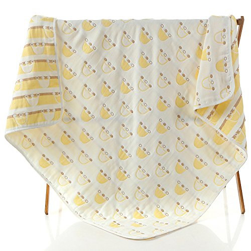 (H_X)全31色可選 6重ガーゼ ベビーケット 湯上りタオル ひざ掛け ふわふわガーゼタオル 子供バスタオル キッズ用ブランケット 毛布 通気性が良い 110×110cm クラウン イエロー
