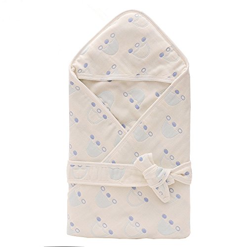 (H_X)全10色可選 綿100% 6重ガーゼおくるみ ベビーバスタオル バスローブ アフガンにも 通気性抜群 80×80cm (クラウン ブルー)
